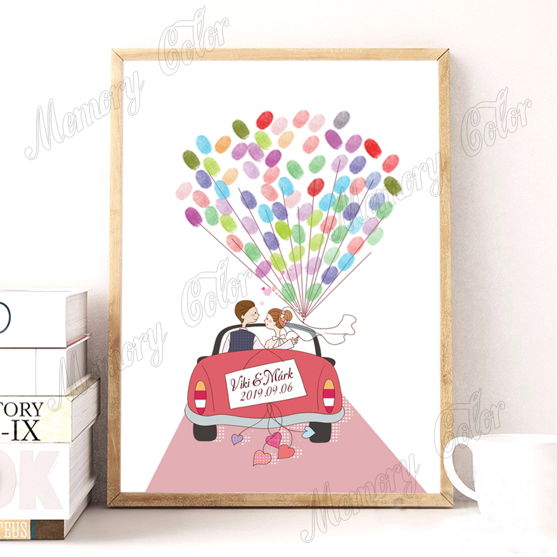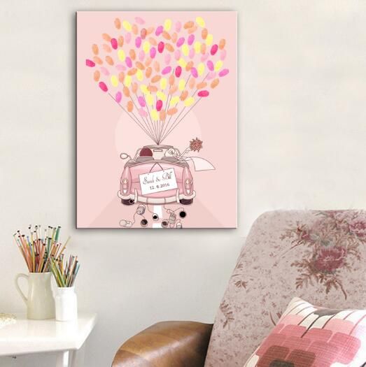 Rosa Hochzeit Auto Kundenspezifische Fingerabdruck Ballon Leinwand