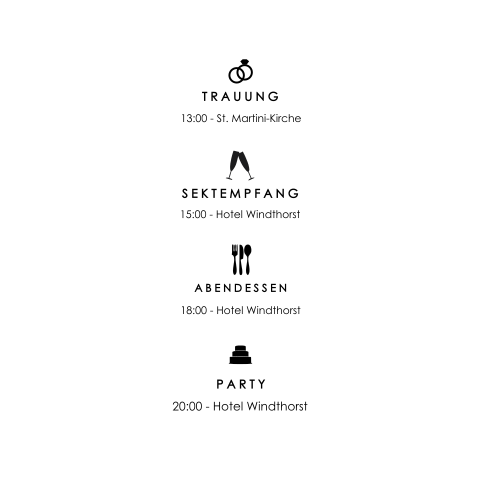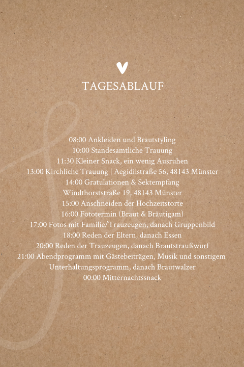 Noch mehr edle hochzeitspapeterie findet ihr auch im selben design bei uns. Die planung einer hochzeit ist immer mit viel. Für alle die auf eurer hochzeit mit aufgaben betraut sind solltet ihr eine telefonliste mit allen wichtigen ansprechpartnern zusammenstellen. So manch einer könnte meinen dass der hochzeits dj der wichtigste teilnehmer auf der hochzeit ist. Legen sie sich einen tagesablaufplan für ihre standesamtliche und kirchliche hochzeit an. Tagesablauf für die kirche. 23 02 2019 botanic der tagesablauf zur hochzeit aus dieser kollektion informiert alle gäste über den ablauf des tages und kann direkt in die tischdekoration mit integriert werden.