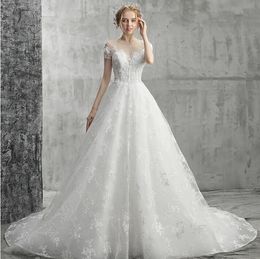 Neu A Linie Spitze Tull Hochzeitskleider Kurzarm Schulterfrei